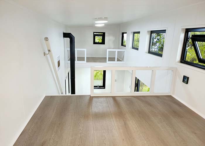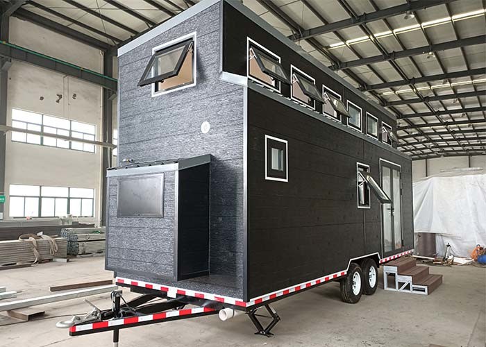 মোবাইল লাইট স্টীল প্রিফ্যাব্রিকেটেড মিনি হাউস অন হুইলস উইথ ডব্লিউপিসি বোর্ড ওয়াল অস্ট্রেলিয়া স্ট্যান্ডার্ড