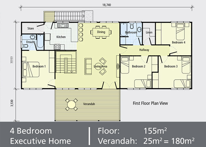 - ১৫৫ বর্গ মিটার মেঝে এবং ২৫ বর্গ মিটার বারান্দা রয়েছে, মোট ১৮০ বর্গ মিটার