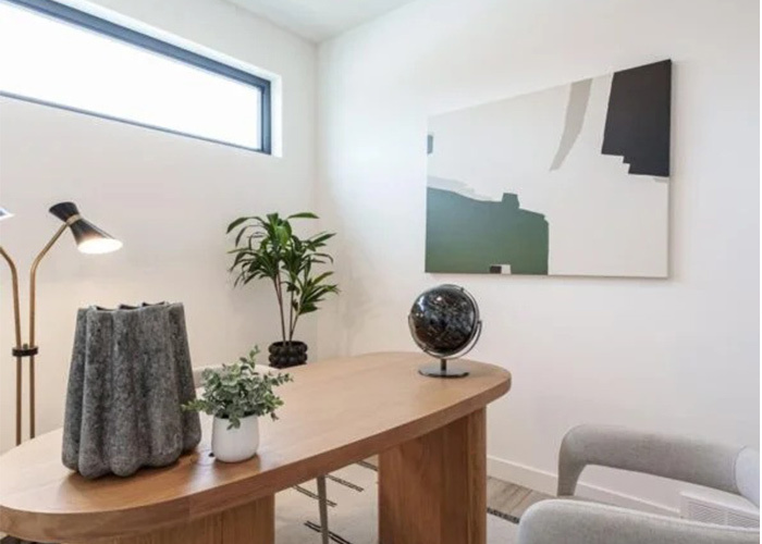 Large panoramic windows optimize natural illumination while connecting inhabitants with the outdoors, creating a healthy and uplifting living environment. The fluid connection between living, dining, and kitchen areas promotes family interaction and social gatherings. The inclusion of a private fitness space underscores the home's commitment to supporting an active, balanced lifestyle without leaving the comfort of home.