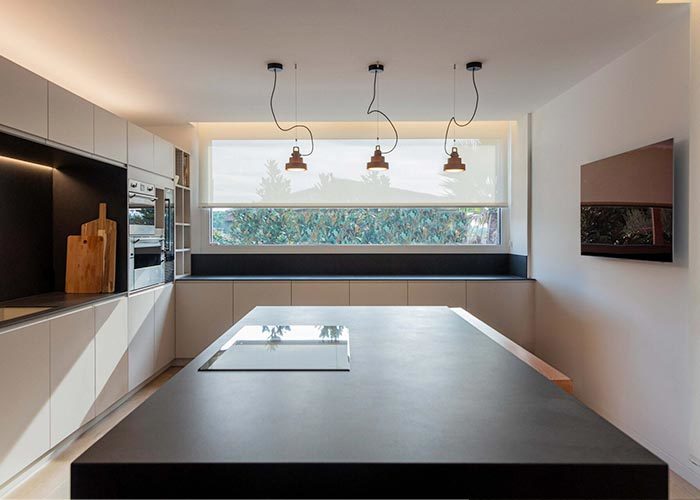 কার্যকর বিন্যাসটি দুটি পৃথক স্টোরেজ রুম এবং, দূর প্রান্তে, একটি প্রশস্ত দুই গাড়ির গ্যারেজ দ্বারা সম্পন্ন করা হয়, যা যানবাহন এবং জিনিসপত্রের জন্য প্রচুর জায়গা নিশ্চিত করে।